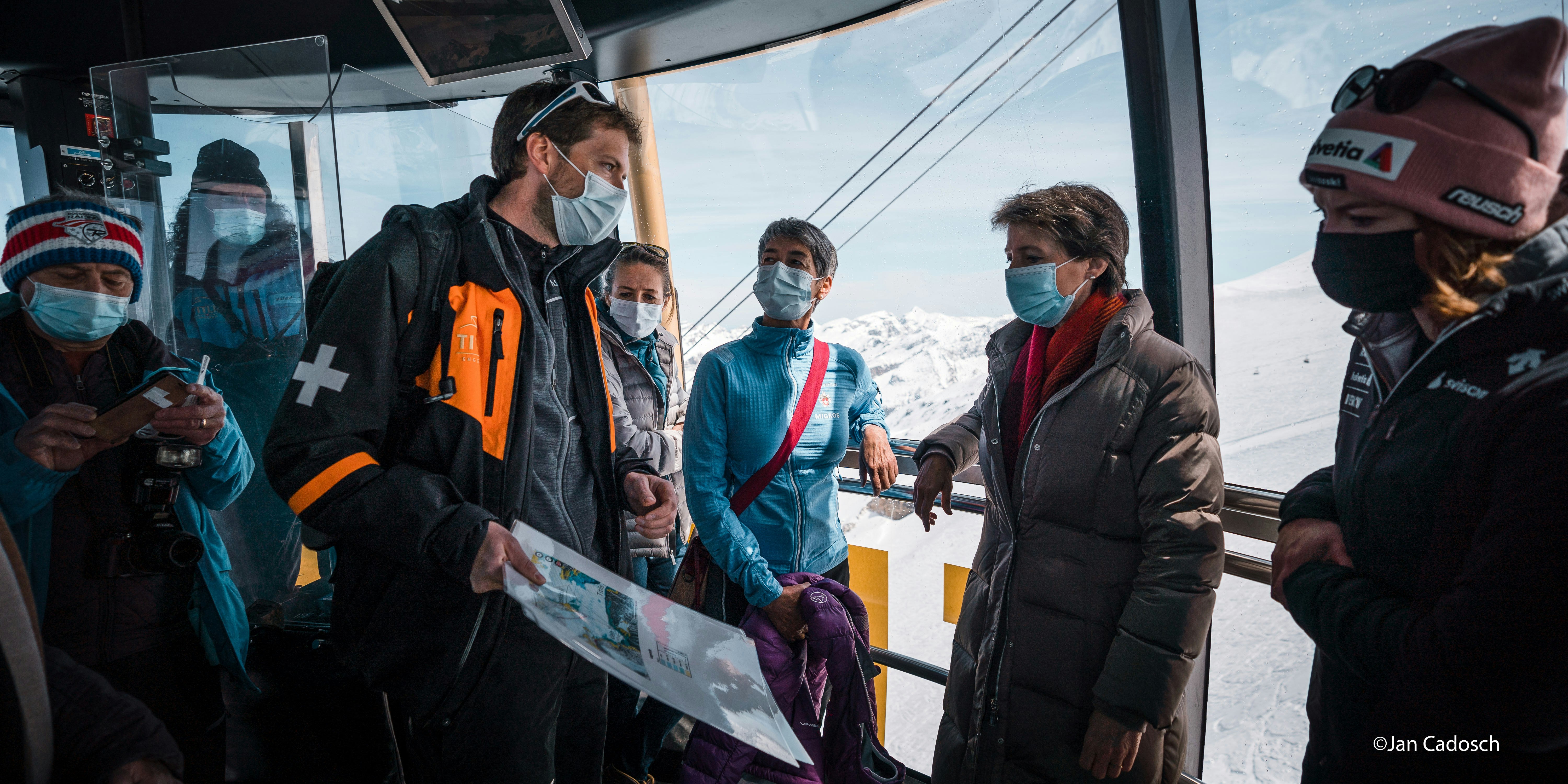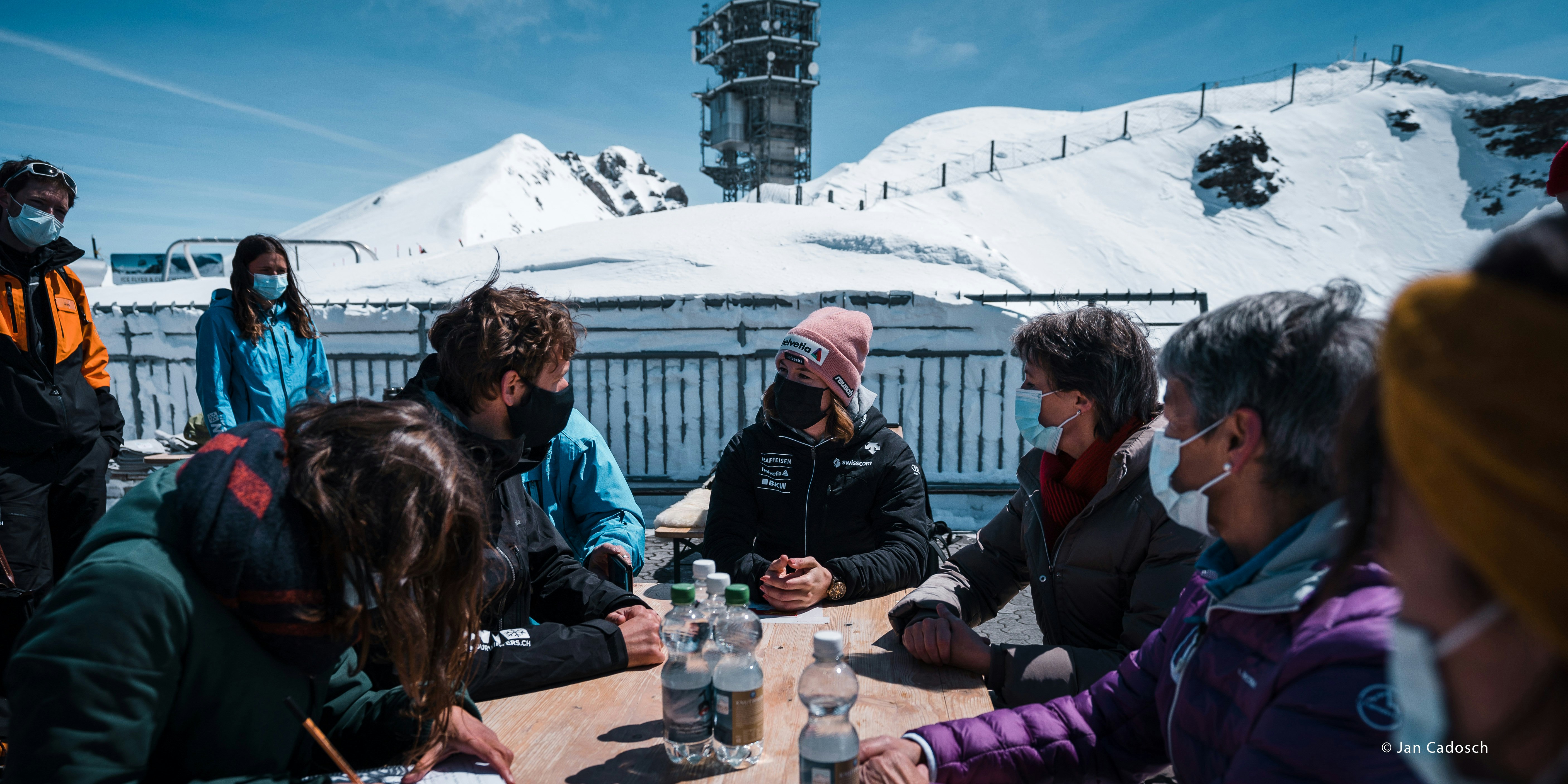 Bundesrätin Sommaruga betonte beim anschliessenden Austausch mit Skifahrerin Michelle Gisin und SAC-Präsidentin Françoise Jaquet: «Die Berggebiete sind auf den Klimaschutz angewiesen. Gletscher und Tourismus sorgen für Arbeit in den Bergen und für Kundschaft für die lokalen Unternehmen. Der Klimafonds im neuen CO2-Gesetz wird die Bergregionen zudem unterstützen, damit sie sich gegen die schädlichen Auswirkungen der Klimaerwärmung schützen können – zum Beispiel, indem Sicherheitsnetze und Schutzeinrichtungen gebaut werden, die vor Erdrutschen und Lawinen schützen.»