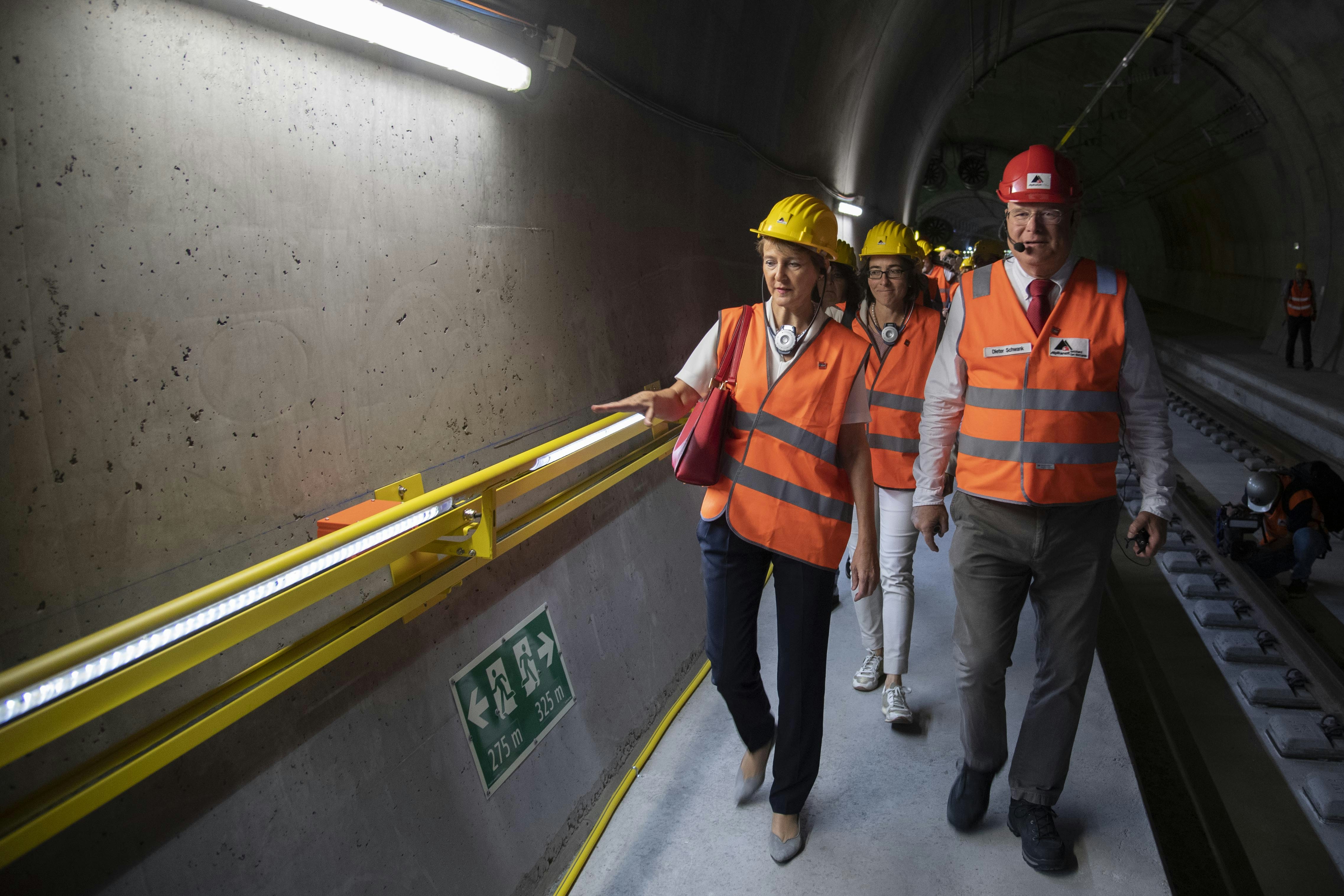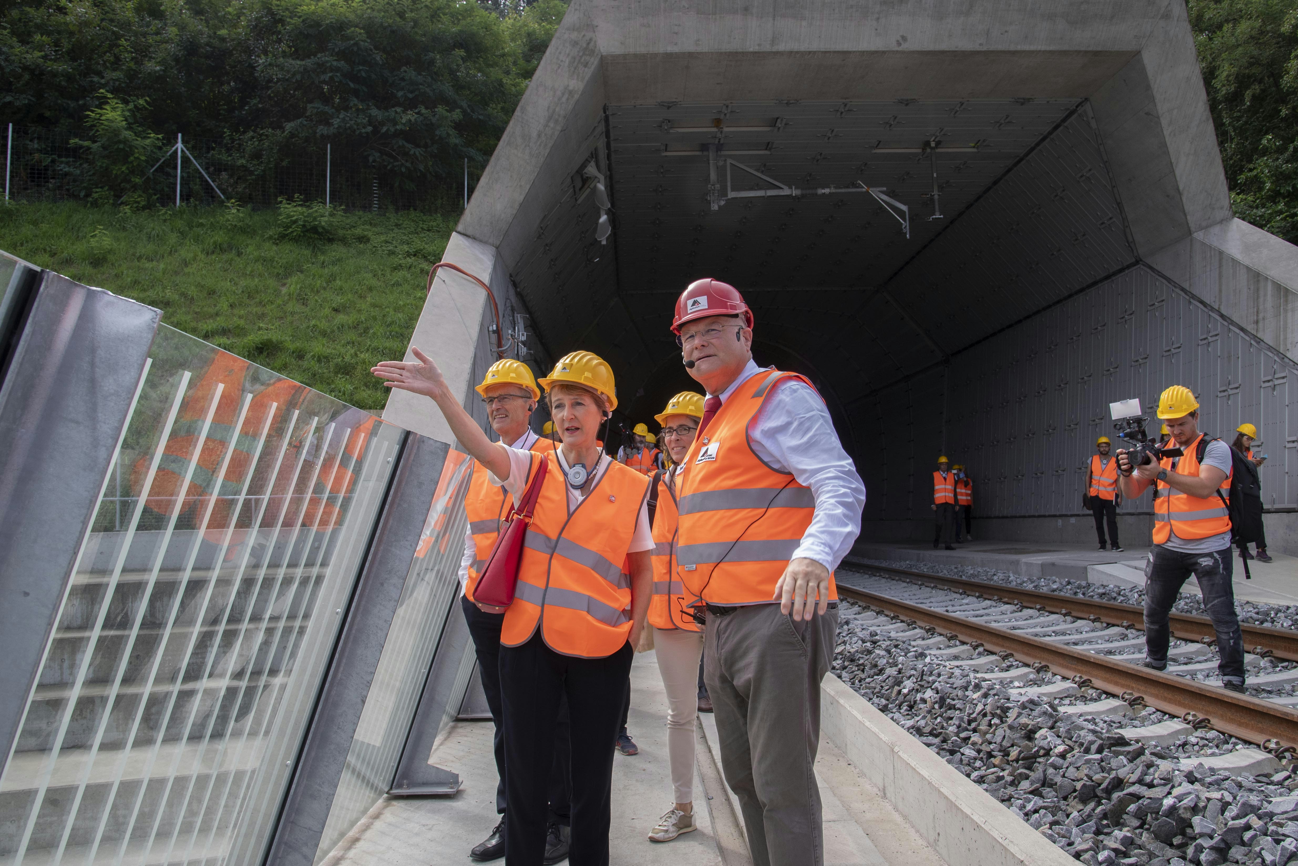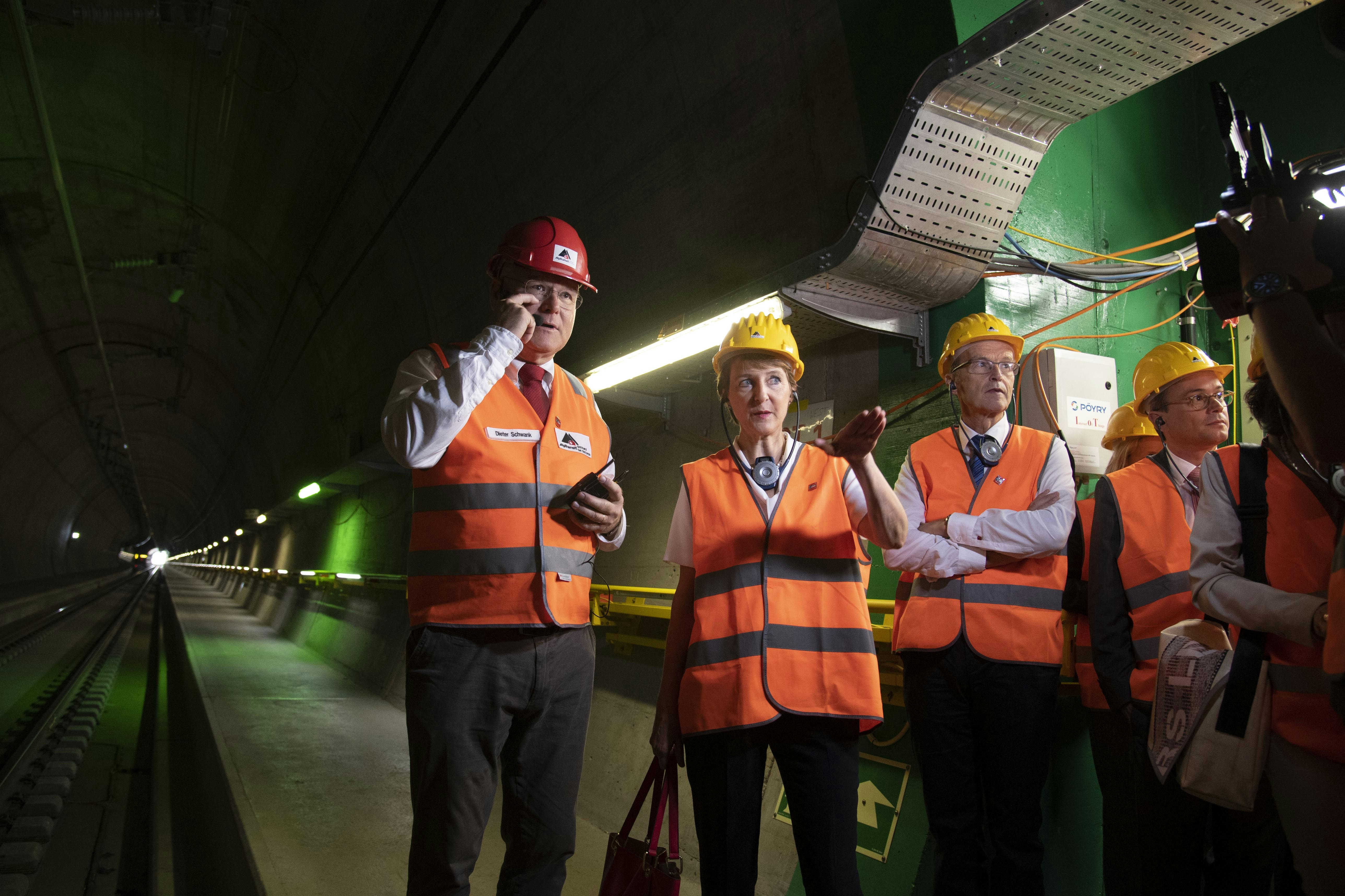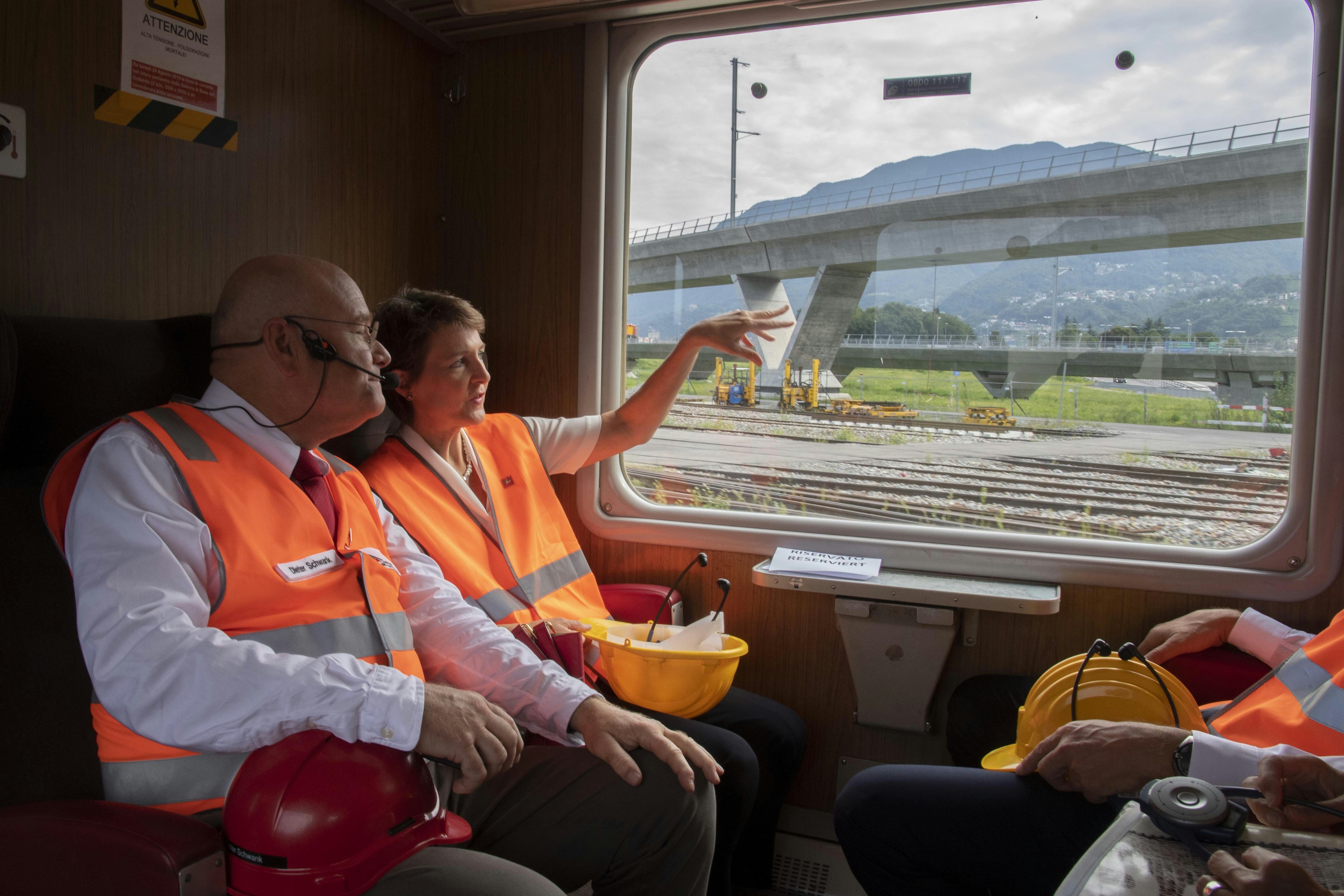 Der Informationsveranstaltung, die rund ein Jahr vor der offiziellen Eröffnung des Ceneri stattfand, wohnten auch der Tessiner Regierungspräsident Christian Vitta und der für den Verkehr zuständige Staatsrat Claudio Zali bei. Zusammen mit Bundesrätin Sommaruga liessen sie sich von Dieter Schwank, Geschäftsführer der Alptransit Gotthard AG, über den Stand der Arbeiten orientieren. Diese laufen wie geplant. Sobald die baulichen Arbeiten abgeschlossen und alle Komponenten und Installationen einer ersten Prüfung unterzogen sind, beginnen die mit der Inbetriebsetzung verbundenen Tests.