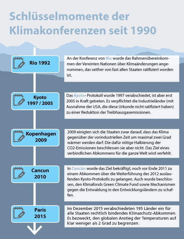 195 Ländern haben an der COP 21 ein für alle Staaten rechtlich bindendes Abkommen verabschiedet. Es bezweckt, den globalen Anstieg der Temperaturen auf klar weniger als 2 Grad zu begrenzen.