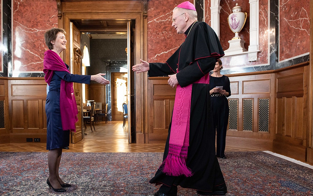 Der päpstliche Nuntius überbringt gemäss eidgenössischem Protokollreglement jeweils als Doyen des diplomatischen Corps Mitte Januar die Neujahrs-Glückwünsche. In einer Ansprache erwiderte Bundespräsidentin Sommaruga die Glückwünsche im Namen des Bundesrates.
