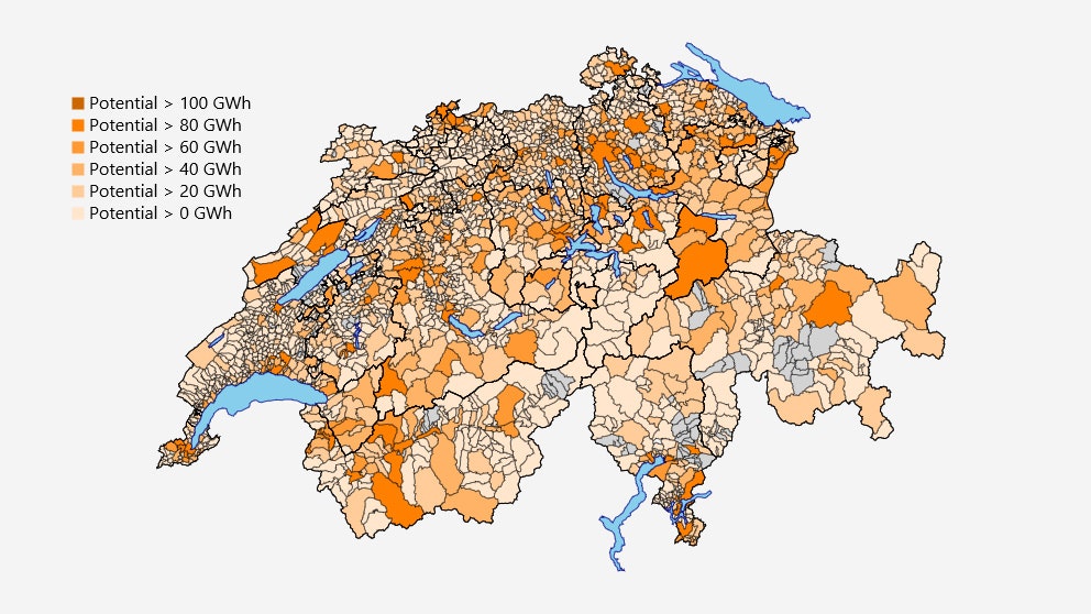 Visualisierung der Daten des Bundesamts für Energie BFE auf einer Karte der Schweizer Gemeinden