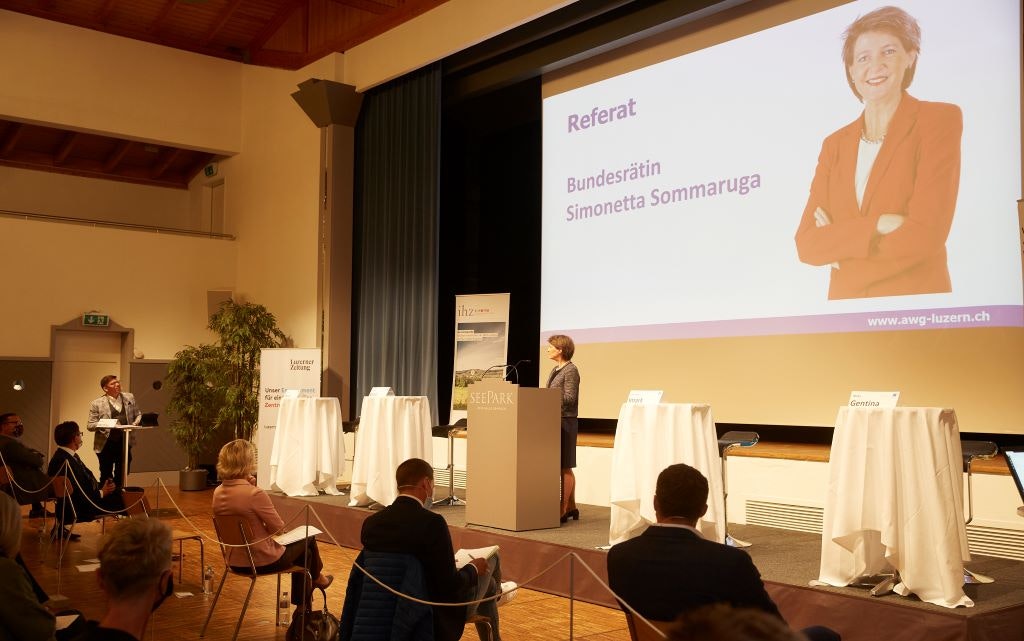 Bundesrätin Sommaruga hat am 29. April 2021 in Sempach ein Referat zur Revision des CO2-Gesetzes gehalten. Der Anlass fand hybrid statt. 50 Interessierten konnten zudem direkt in der Festhalle Sempach den Anlass mitverfolgen.