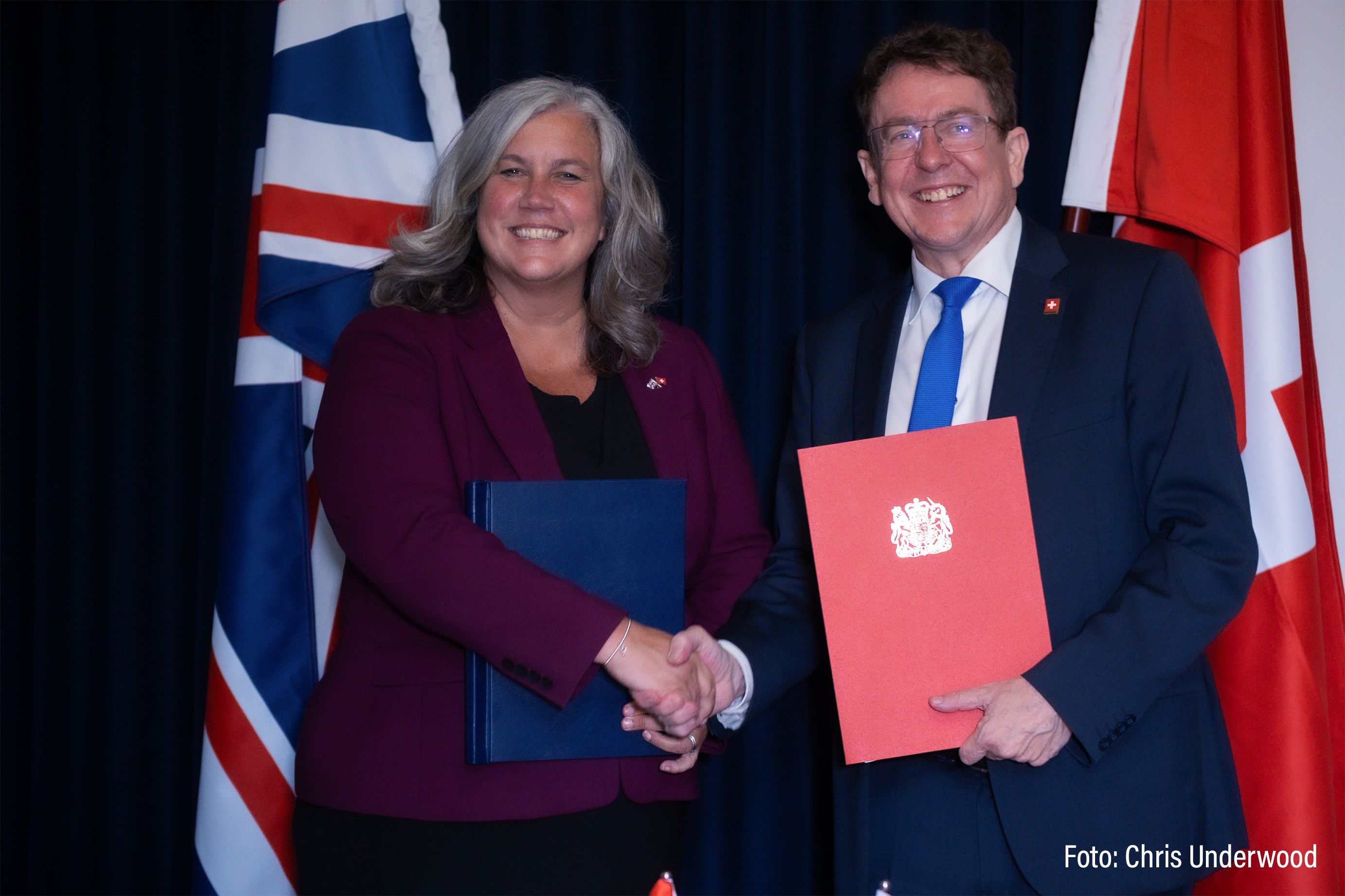 The medium-term goal is to establish a direct rail link between Switzerland and the UK. This will require check-in terminals at departure stations in both countries, since the UK is not a member of the Schengen area, plus an agreement between Switzerland, France and the United Kingdom. As part of the visit, Mr Rösti and Ms Alexander visited the Eurostar terminal at London's St Pancras railway station, which is used for services between the UK and Europe.
