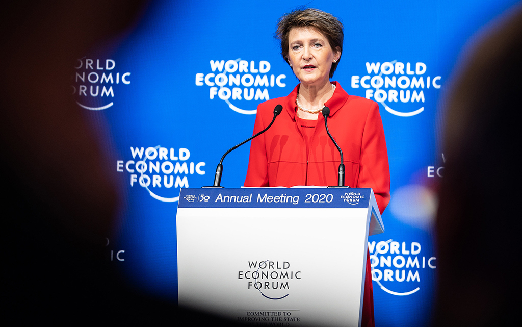 President Simonetta Sommaruga opened the WEF Annual Meeting on Tuesday, 21 January. On Monday, prior to the event, she met with EU Commission president Ursula von der Leyen in Davos. A meeting with US President Donald Trump took place on Tuesday.
