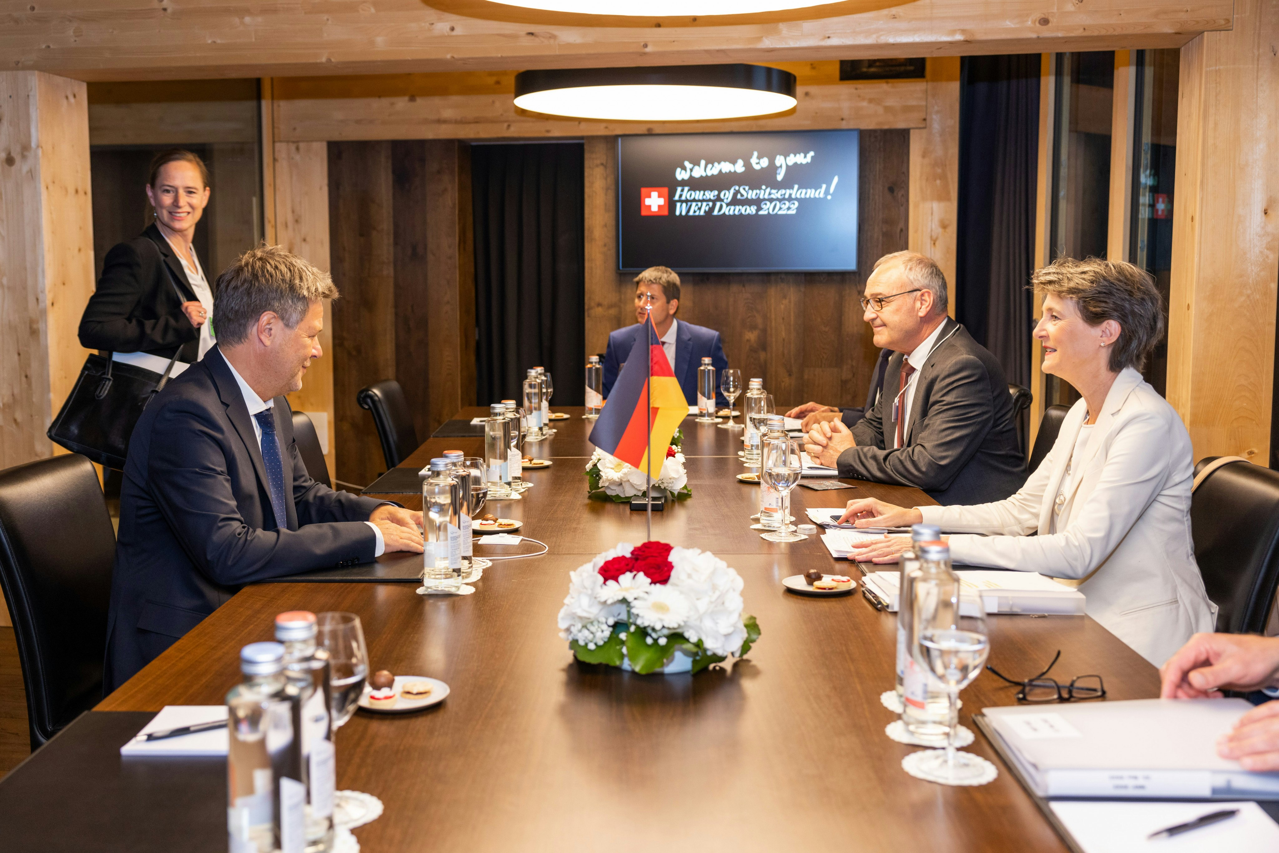 The talks in Davos were dominated by the war in Ukraine and its impact on Europe. Federal Councillor Simonetta Sommaruga spoke with her German counterpart Robert Habeck about the measures the two countries have taken to reduce dependence on Russian gas and to create the necessary gas reserves. In order to strengthen the gas supply, Switzerland and Germany have agreed to quickly start negotiations on a solidarity agreement.