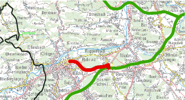 - Zubringer Aarau - Aarau Ost mit 5,4 Kilometern Länge. Die Strecke bindet den Kantonshauptort über Nationalstrassen an die grossstädtische Agglomeration Zürich an.