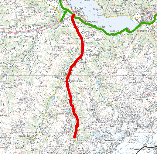 Spiez - Kandersteg (longueur : 24,5 km). Ce tronçon assure la liaison entre les grandes agglomérations de Berne, Bâle et Zurich avec la grande région Gênes/Novare/Turin/Milan du nord de l'Italie et améliore le raccordement du Valais. En reprenant ce tronçon, la Confédération assume la responsabilité de tout l'axe Lötschberg - Simplon qui représente une liaison importante pour le transit nord-sud.