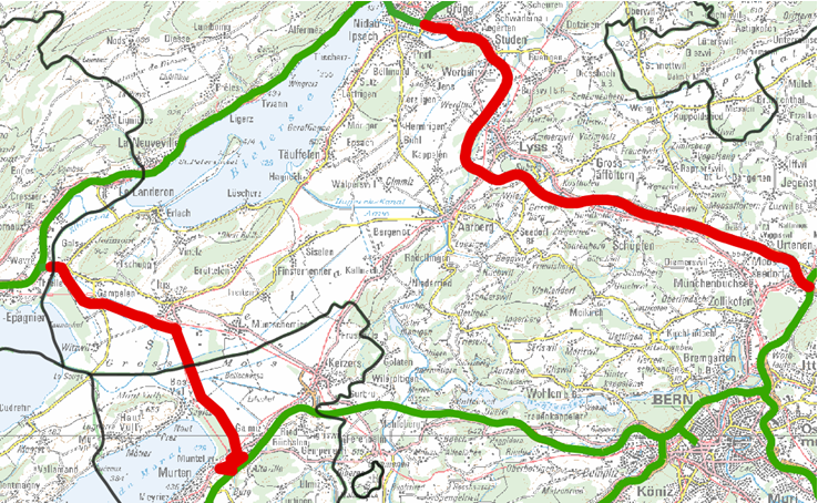 - Limite cantonale NE - Anet - limite cantonale FR du tronçon Thielle - Morat (longueur: 8,6 km). Ce tronçon assure la liaison entre la N1 Berne - Zurich et les grandes régions de Besançon/Nancy/Dijon et de Belfort.