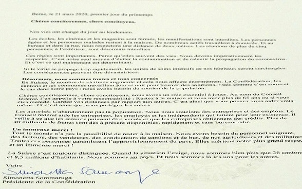 24 heures, 21.03.2020: Lettre de la présidente de la Confédération