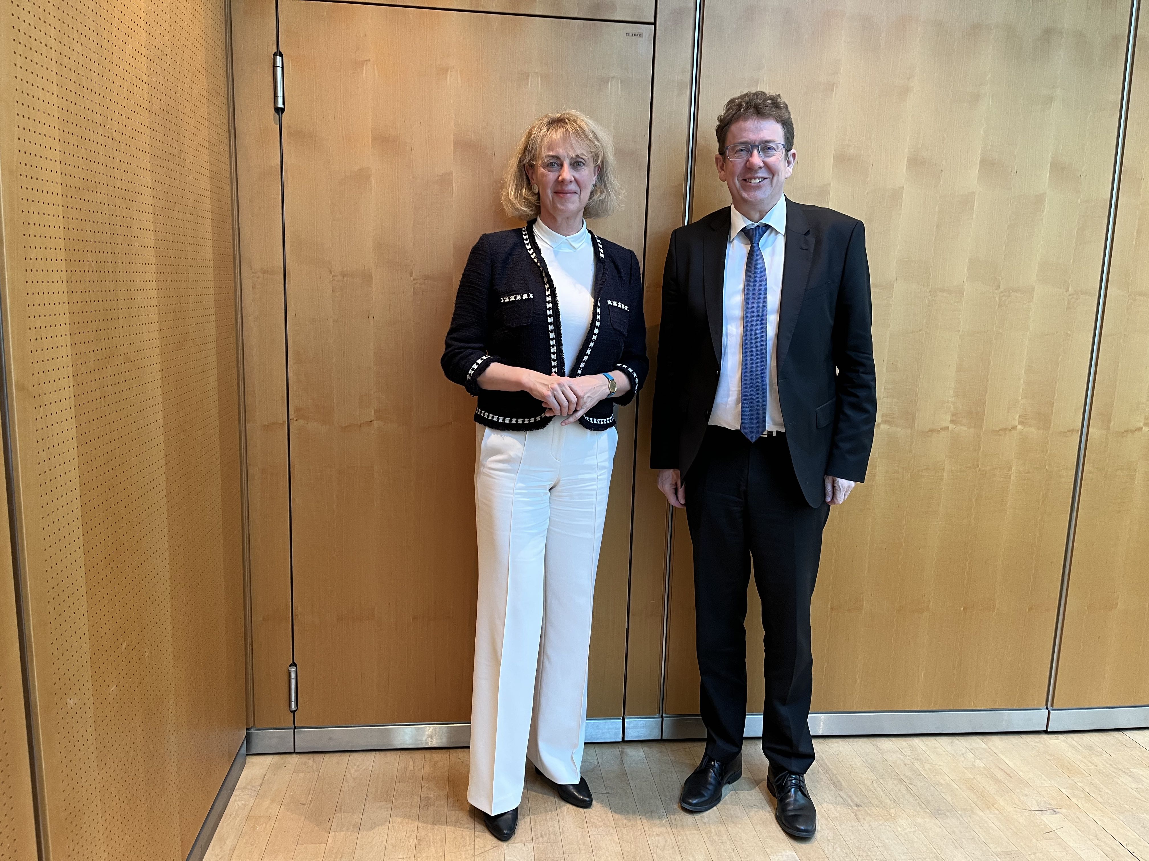 Le conseiller fédéral Albert Rösti et le ministre fédéral allemand du numérique et des transports Volker Wissing ont discuté des défis qui se poseront pour le trafic de marchandises sur l’axe nord-sud et de la nécessité de mettre en place une procédure coordonnée concernant l’introduction de l’attelage automatique numérique. Lors de la rencontre, les deux ministres ont signé un accord qui crée une meilleure base légale pour le transport régional transfrontalier par bus entre l’Allemagne et la Suisse.