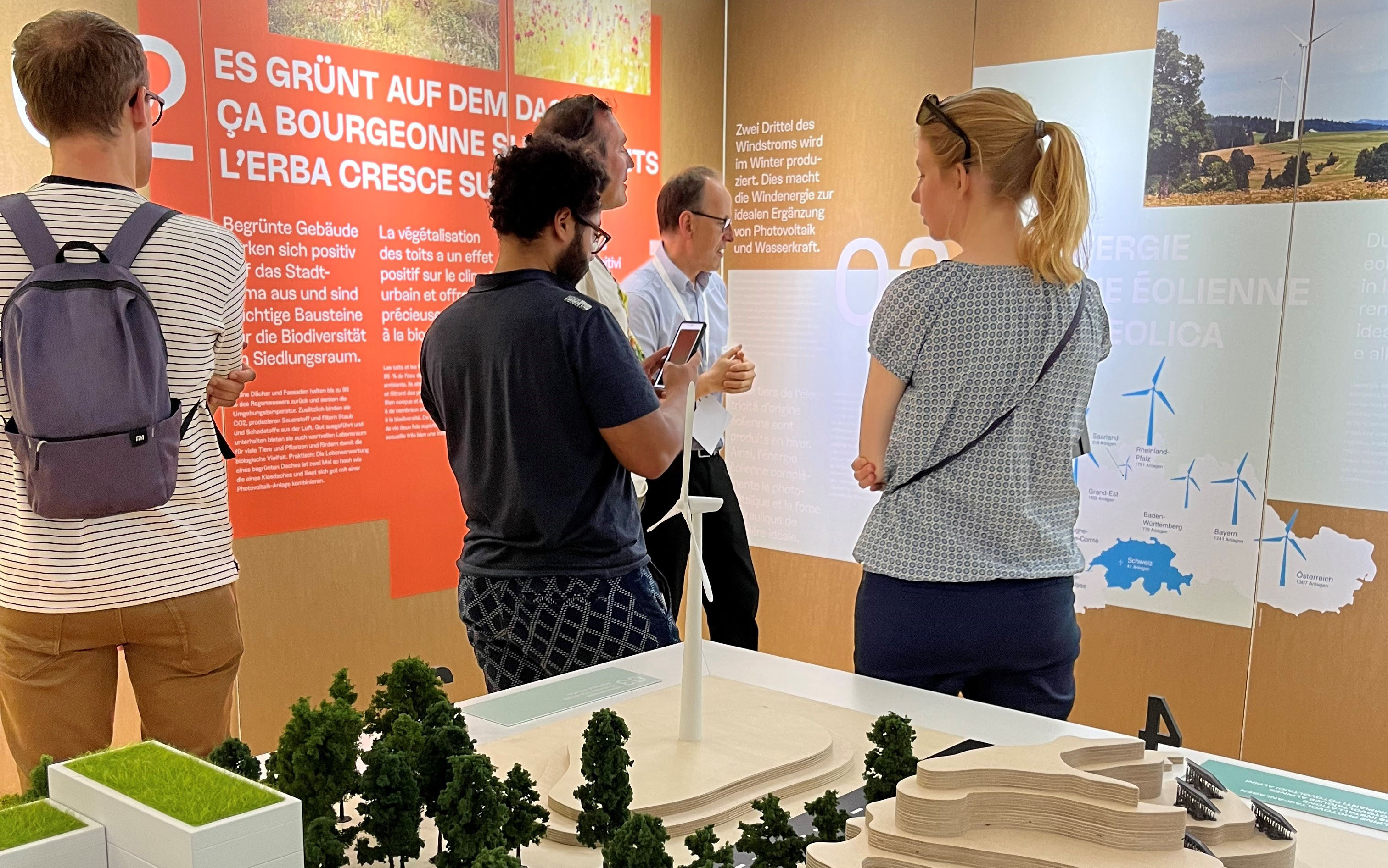 L’exposition commune de l’Office fédéral de l’énergie et de l’Office fédéral de l’environnement montrait comment les villes suisses peuvent s’adapter aux changements climatiques et en quoi, à l’avenir, les énergies renouvelables contribueront encore davantage à l’approvisionnement énergétique de la Suisse. Les villes les mieux adaptées aux changements climatiques sont celles qui mettent l’accent sur la qualité de vie et le bien-être de la population. Un modèle permettait de visualiser comment mieux protéger la population urbaine, particulièrement affectée par l’effet d’îlot de chaleur, contre la hausse des températures. Les espaces verts ou les revêtements routiers sans surchauffe ont ici un rôle central à jouer. Les toits végétalisés permettent non seulement de rafraîchir le climat urbain, mais aussi de protéger notre biodiversité. Les toits sont également importants pour la production d’énergie solaire. Comme le montrait clairement l’exposition, il est tout à fait possible de combiner plus de biodiversité et d’électricité solaire sur les toits.