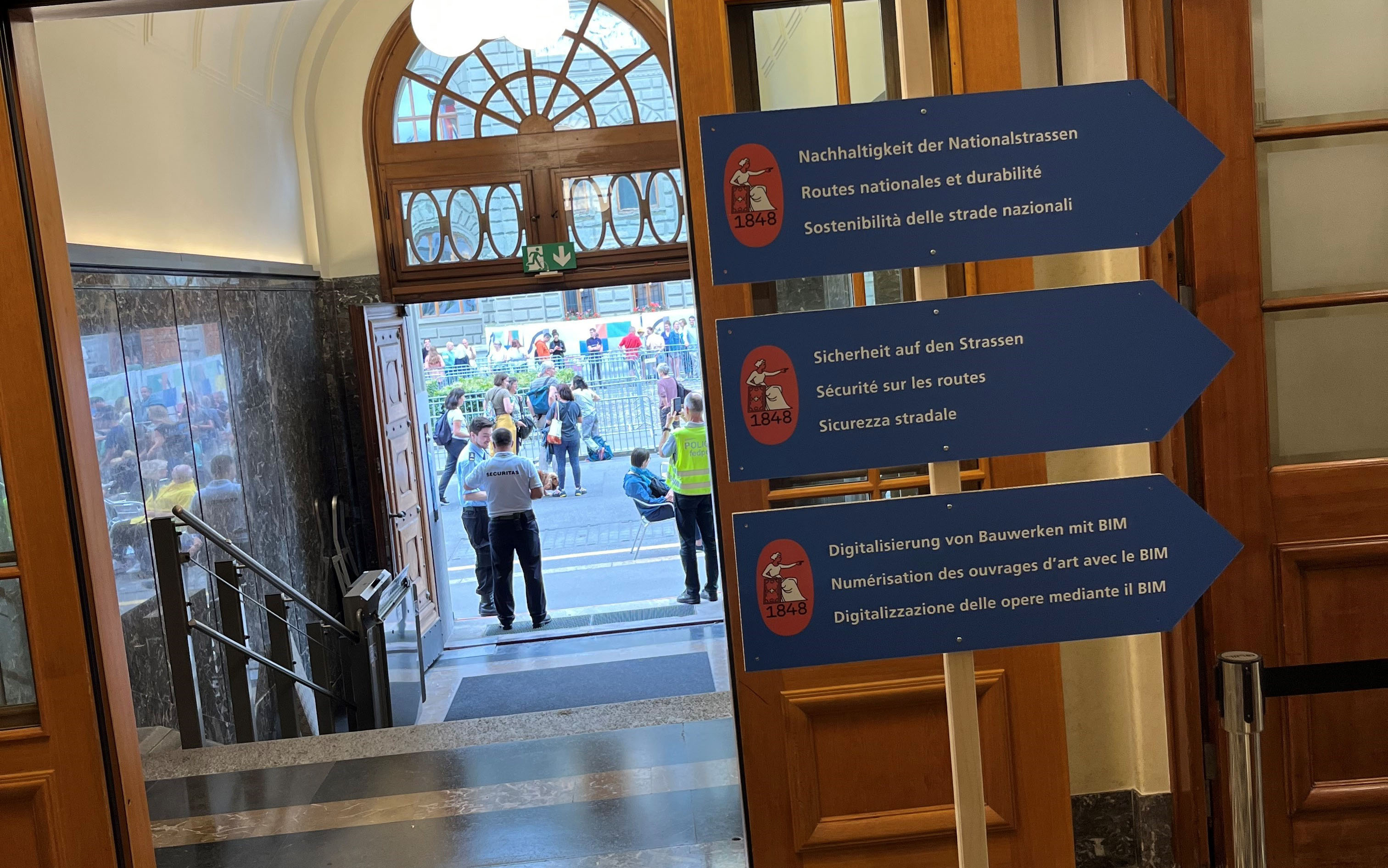 L’Office fédéral des routes (OFROU) a présenté trois thèmes principaux. La première partie abordait la durabilité des routes nationales. On y apprenait par exemple qu’il est possible de contribuer à l’approvisionnement énergétique durable grâce à des installations photovoltaïques disposées le long des routes. Le public avait la possibilité de découvrir des exemples de réutilisation des matériaux d’excavation et de percement et d’améliorer ses connaissances sur la construction de tunnels grâce à une présentation interactive.