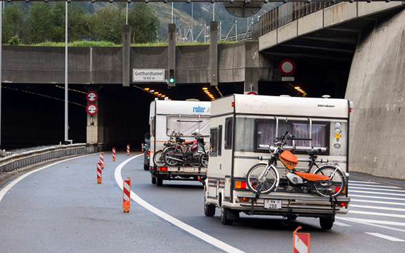 Le tunnel routier du Gothard est utilisé chaque année par cinq millions de voitures de tourisme et 900 000 poids lourds. La route du col ne peut être empruntée que durant le semestre d'été, étant fermée en hiver. Avec un trafic journalier de quelque 17 000 véhicules en moyenne, le Gothard est la plus importante liaison de Suisse à travers les Alpes.