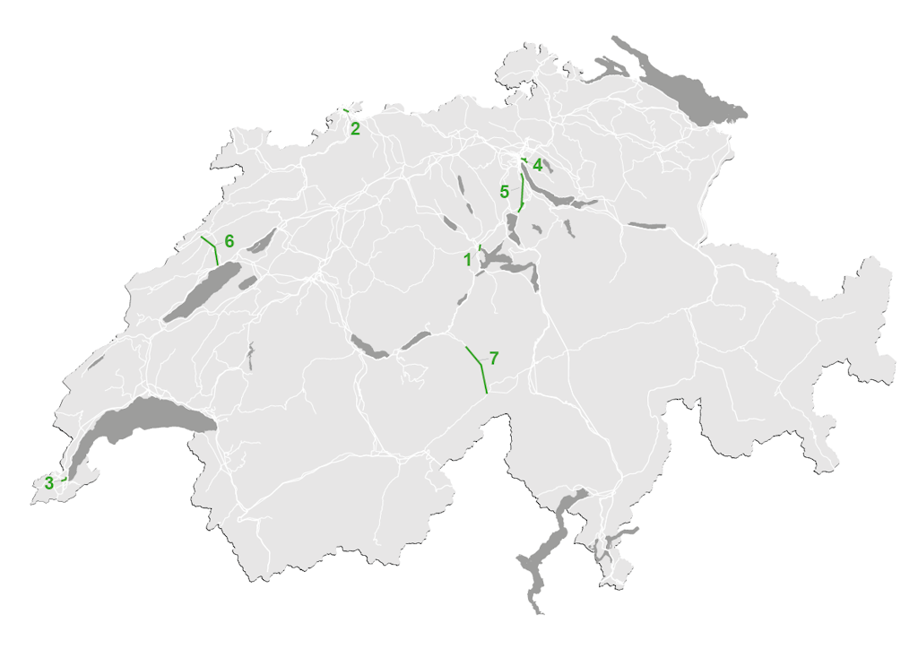 Plus de 30 autres projets du Programme de développement stratégique des routes nationales (PRODES) présentant un rapport coûts-utilité plus faible – soit un montant total d’environ 18 milliards de francs – ne seront pas poursuivis. Il s’agit notamment des projets d’aménagement entre Le Vengeron et Nyon ainsi qu’entre Schönbühl et Kirchberg, qui ont été rejetés dans le cadre de l’étape d’aménagement 2023. Pour ces tronçons, le DETEC examine des mesures d’exploitation telles que la réaffectation temporaire des bandes d’arrêt d’urgence afin de fluidifier le trafic aux heures de pointe.