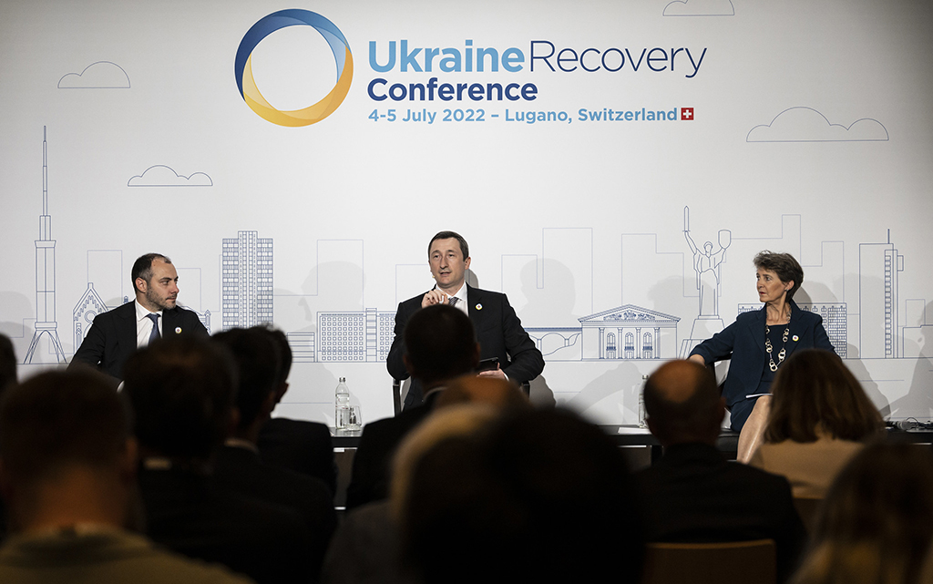 Il 4 luglio 2022 la consigliera federale Sommaruga ha partecipato a Lugano all'«Ukraine Recovery Conference», organizzata dalla Svizzera. Un obiettivo fondamentale è stato quello di progettare un quadro politico per il processo di ricostruzione. In un gruppo di lavoro della conferenza, La Consigliera federale Sommaruga è intervenuta sull'importanza dello sviluppo delle infrastrutture. Ha inoltre firmato un accordo sul clima con il ministro ucraino dell'ambiente Ruslan Strilets.