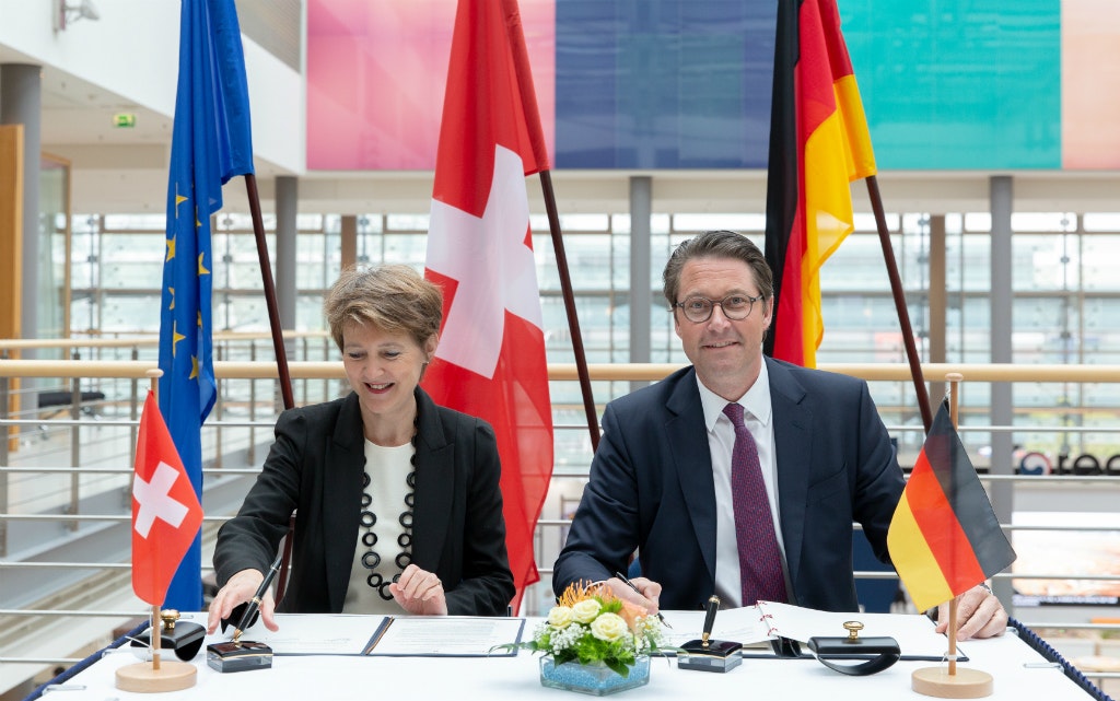 Il 22 maggio la consigliera federale Sommaruga e il suo omologo tedesco Andreas Scheuer hanno sottoscritto a Lipsia una dichiarazione ministeriale sul traffico merci ferroviario volta ad assicurare in Germania sufficienti capacità sulle tratte di accesso ad Alptransit fino a quando la linea della valle del Reno non sarà quadruplicata fra Basilea e Karlsruhe.