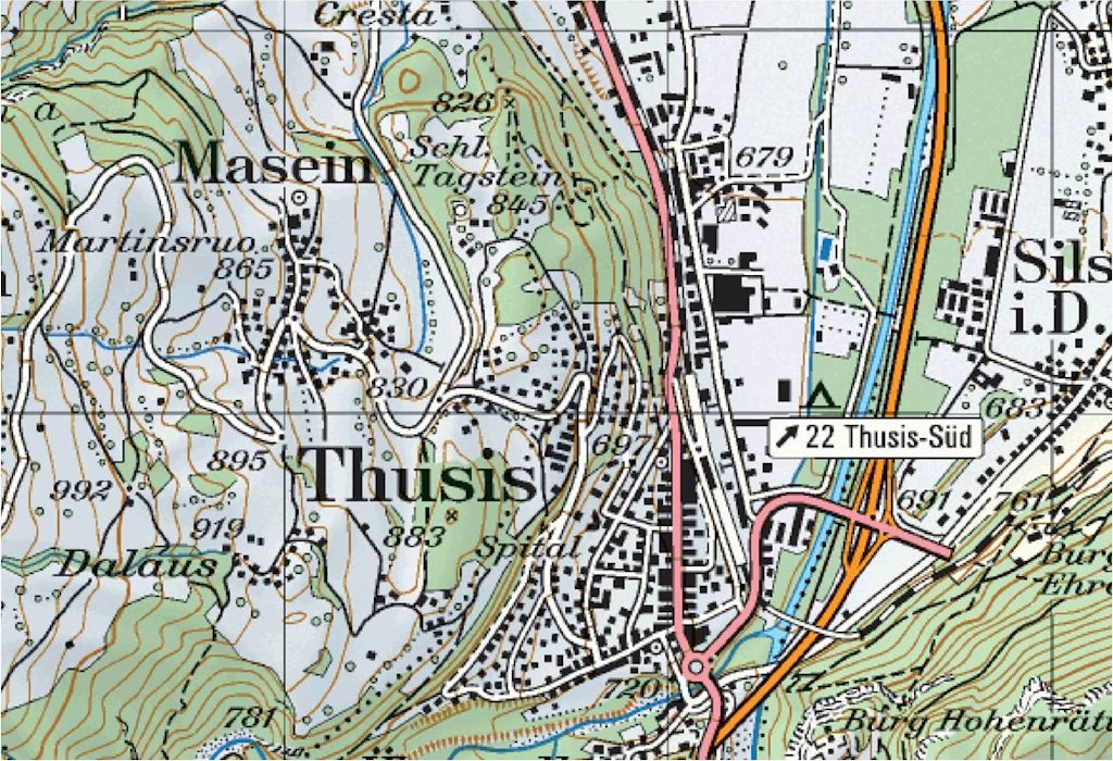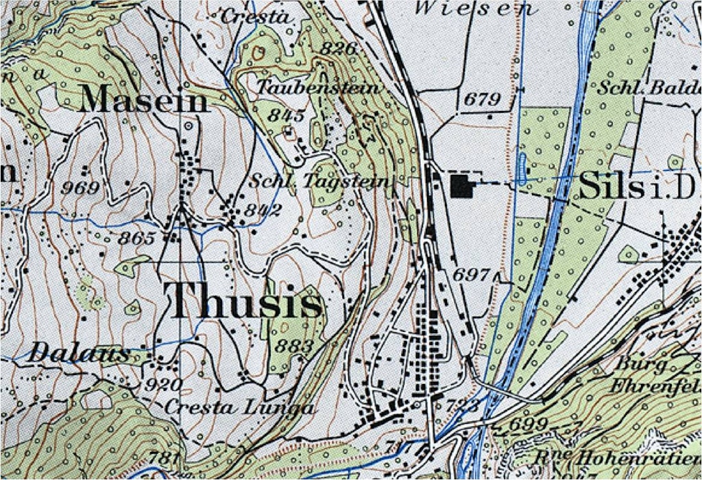 Thusis (GR) Karte Thusis (GR) um 1950, © swisstopo