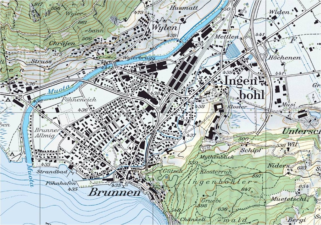 Brunnen (SZ) Karte Brunnen (SZ) um 1950