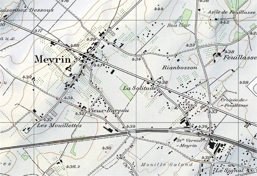 Meyrin (GE) Karte Meyrin (GE) um 1950