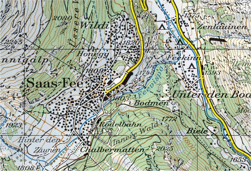 Saas-Fee (VS) Karte Saas-Fee (VS) um 1950, © swisstopo