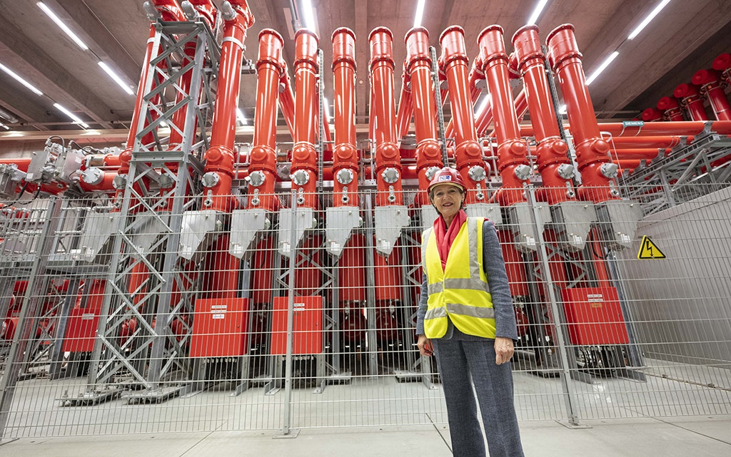 La consigliera federale Sommaruga visita la centrale di pompaggio-turbinaggio di Nant de Drance