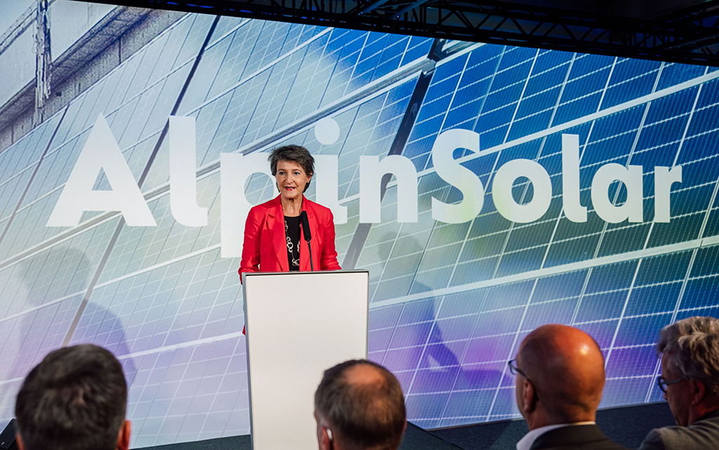 L'inaugurazione dell'impianto solare è avvenuta in presenza della consigliera federale Sommaruga. «Negli ultimi dieci anni in Svizzera abbiamo investito decisamente troppo poco nella produzione di elettricità, affidandoci invece eccessivamente all'importazione», ha affermato nel suo discorso inaugurale. «I Paesi a noi vicini hanno anch'essi un fabbisogno crescente di elettricità ed è per questo che dobbiamo potenziare la produzione nazionale. Alpinsolar è un progetto lungimirante poiché gran parte della produzione avviene in inverno, quando il fabbisogno nazionale di energia elettrica è più alto.»